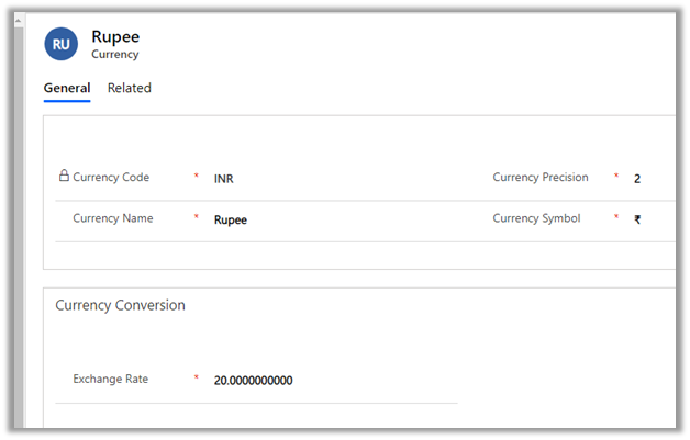 - Create a new currency field for an entity will create a corresponding base currency field. It will also create Currency and Exchange rate field if this is the first currency field created for the entity. Any subsequent new currency field created will not create the currency and exchange rate field.