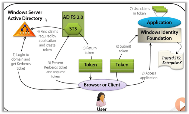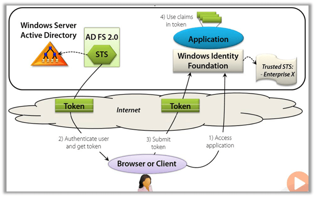 The above authentication works well within an organization boundary, how about if a user wants to access an application from the internet, or belongs to a different domain, to address this we have claims-based authentication, which uses token.