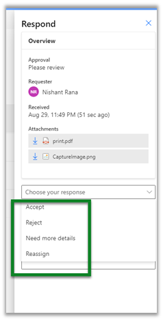 We have defined below custom responses – Accept, Reject, and Need more details.