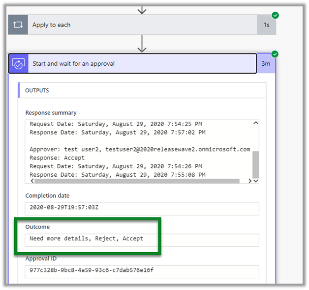 Here the flow will wait for responses from all the approvers before moving to the next action.