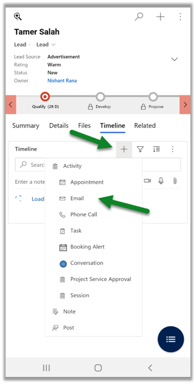 Compose and send email from Dynamics 365 Mobile app