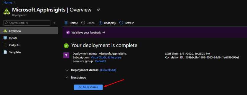 - It’ll be deployed pretty quickly within a few minutes unlike some heavy Azure resources