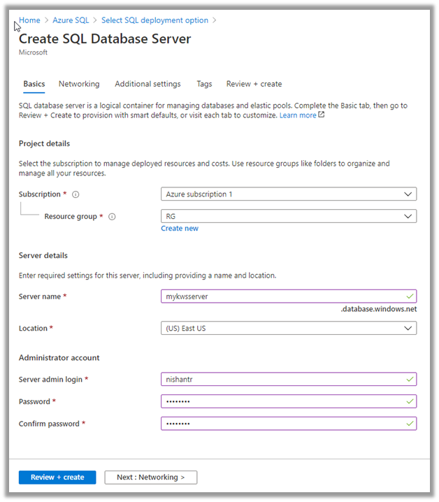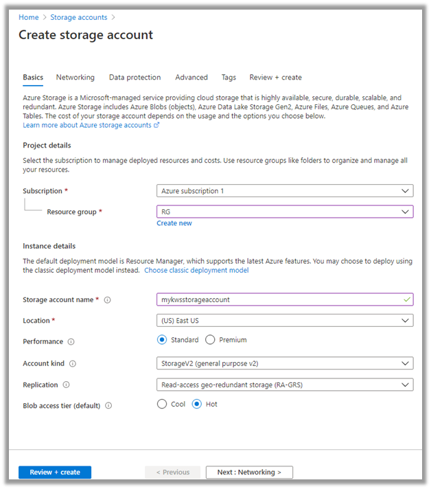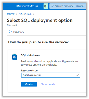 Now with Azure SQL Server and Database created, the next step is to create the Storage account.
