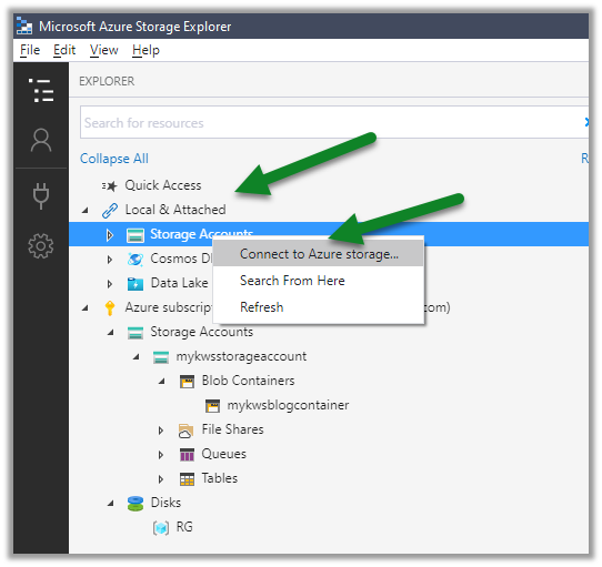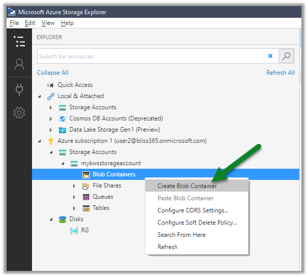 With the Azure Storage created, now let us connect to Azure using the Azure Storage Explorer.