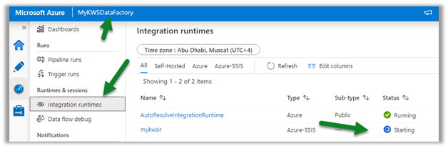 In parallel, we can see our Azure Data Factory created with the integration runtime, which is in Starting status.