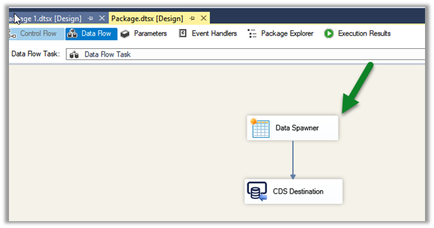 It uses Data Spawner Component to generate test data for Contacts and the CDS Destination component to create those records inside CDS.