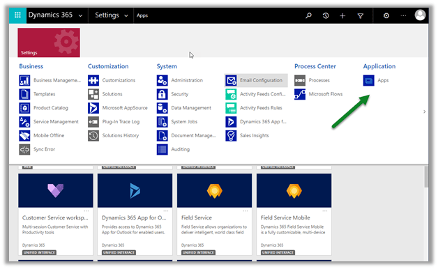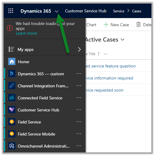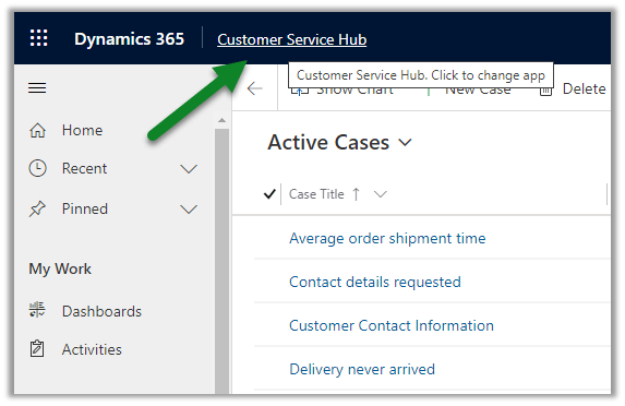 - To switch between the Dynamics 365 Apps, we need to click on down arrow icon next to Dynamics 365.