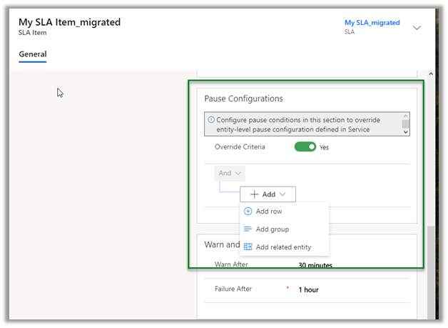 With 2020 Release Wave 2, we can now configure Pause Criteria at the SLA Item level, which overrides the criteria defined at the SLA / Entity level as defined above.