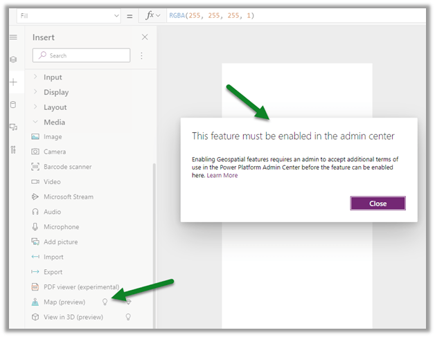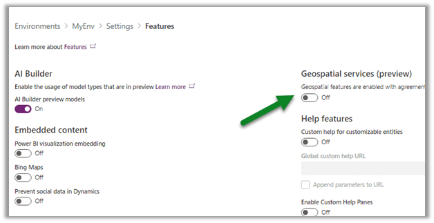 Before we can use the Map component (preview), we need to first enable it for the environment.