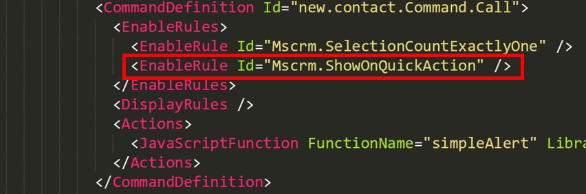 Below are the new rules (Enable Rule) introduced through which these contextual quick actions/commands can be shown or hidden.