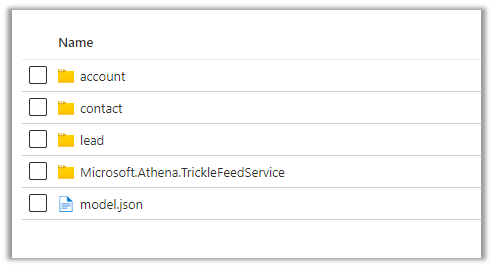 Within the container inside the Storage Account, we can see corresponding folders created per table/entity along with model.json as shown below.