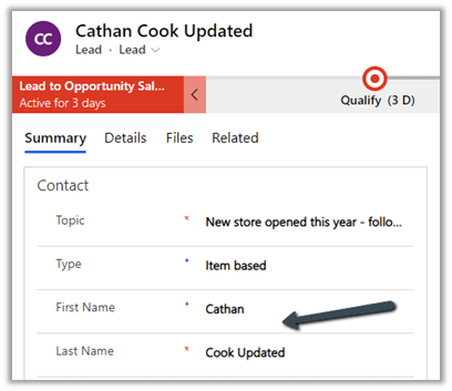 Let us update one of the lead records by appending ‘Updated’ in the last name field.