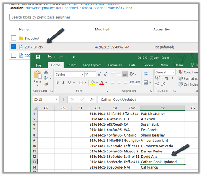 With the in-place update, the default setting, the file will contain the full data set, and any update in the source will update the same in the synced CSV file or the data partition, similarly, any record deleted will delete the row from the data partition, unlike Append Only where a new row will be added in case of both update and delete.
