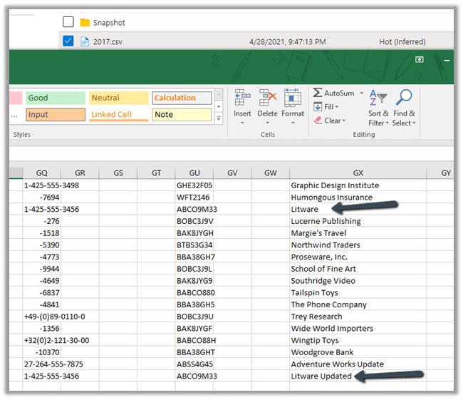 As expected, being Append Only mode, we can see a new row added for the Litware record.