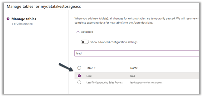 For the Lead table, we haven’t selected the option for advanced configuration settings and are going by default.