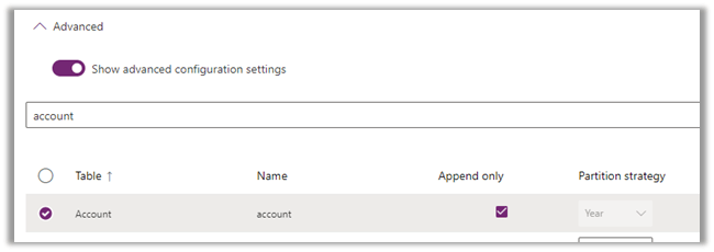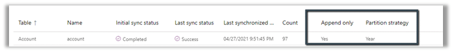For Account , we have opted for Append Only as true, for which the Partition strategy option is disabled and set as Year.