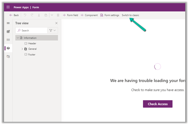 The only way we could proceed was by switching to classic experience.