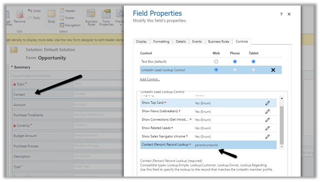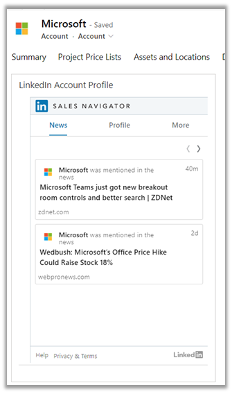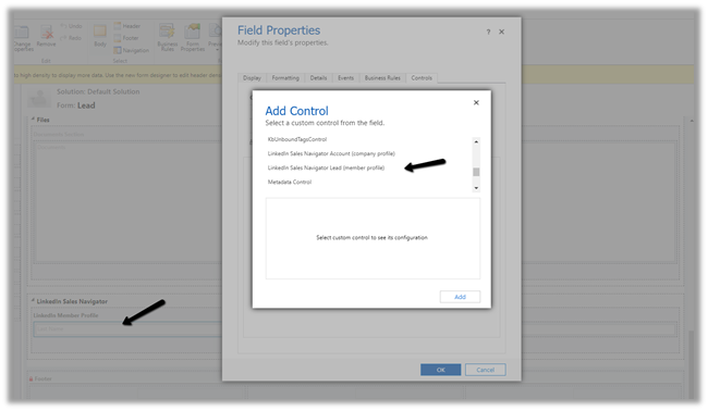 LinkedIn Sales Navigator solution will add the LinkedIn Sales Navigator controls to the default forms of Lead, Opportunity, Contact, and Account.