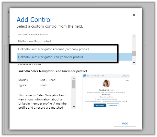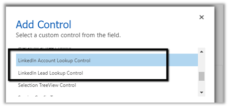 The controls are LinkedIn Sales Navigator Lead control and LinkedIn Sales Navigator Account control along with their corresponding lookup controls.
