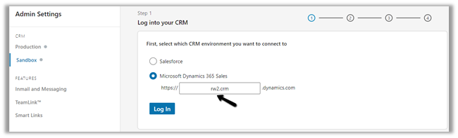 Enter the domain name of the Dynamis 365 Sales organization and Log In