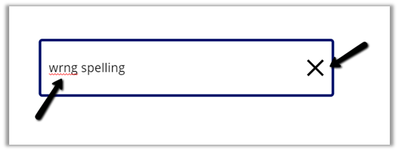 checks for the spelling as well provide the option to clear the text box as shown below.