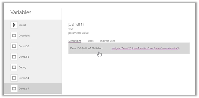 • Use Navigate to move to a different Screen on OnSelect of Button