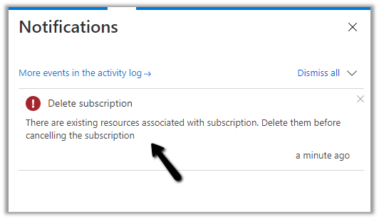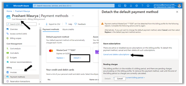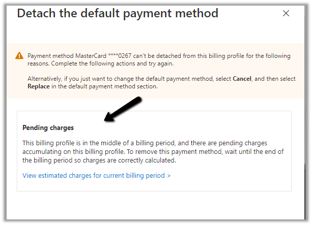 “There are active or disabled Azure subscriptions on this billing profile. To detach this payment method, cancel and then delete all such subscriptions.”