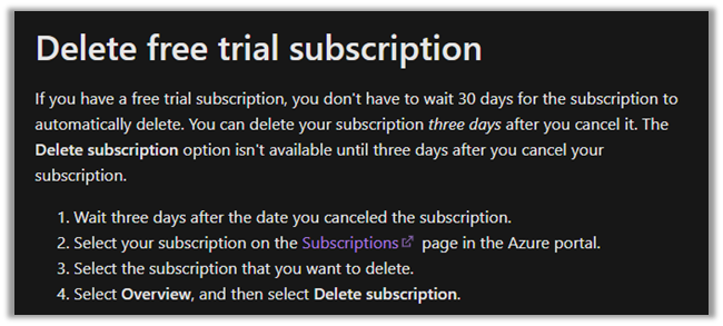 Now again we can only delete the free trial subscription after 3 days of canceling it. So we would have to try deleting the subscription after 3 days.