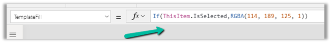 If(ThisItem.IsSelected,RGBA(114, 189, 125, 1))
