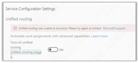 “Unified routing was unable to provision. Please try again or contact Microsoft Support”
