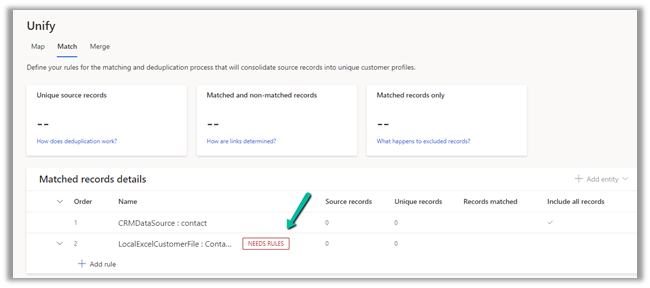 Next, we need to define the rules for matching the records between the data sources.