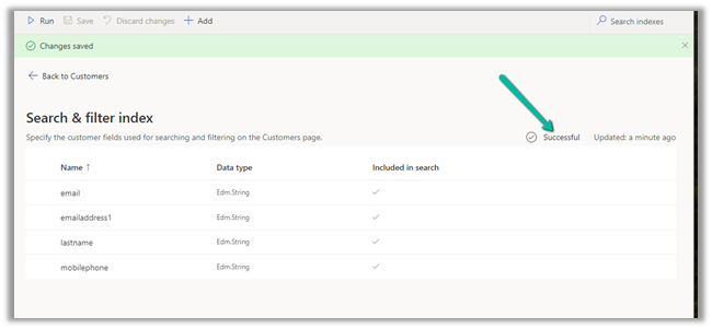 Clicking on Customers asks us to configure the last step – Search & filter index.