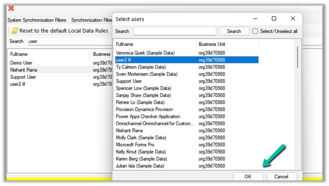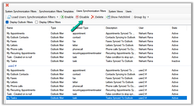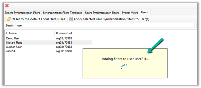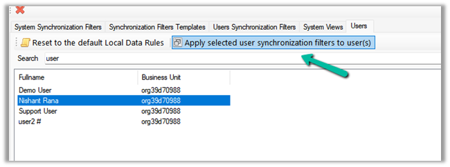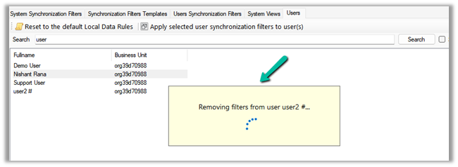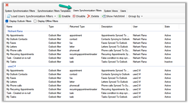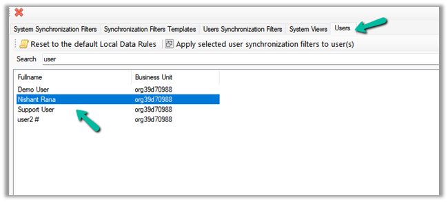 We can also verify it from the User Synchronization Filters tab, where we can load the synchronization filters for all the users.