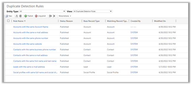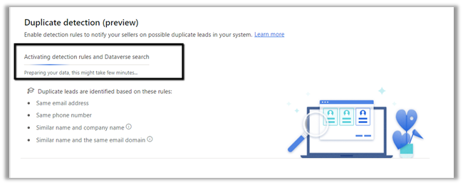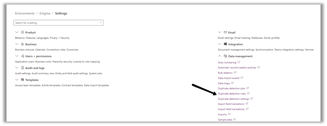 - It works along with the already existing duplicate detection rules set through Settings >> Data Management >> Duplicate detection rules