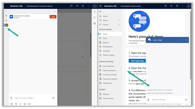 Clicking on the Open agent app opens the Omnichannel  for Customer Service App.