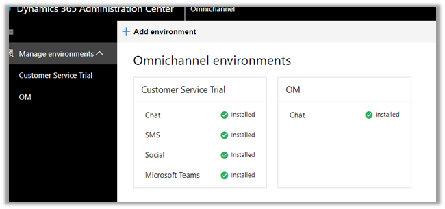 Inside Dynamics 365 Administration Center we can manage the environments in which we want to install or remove the Omnichannel as well as different channels inside it.