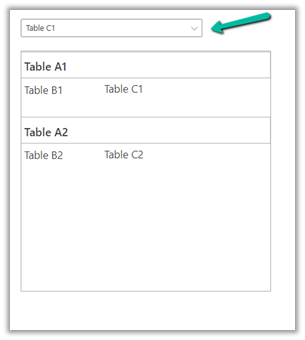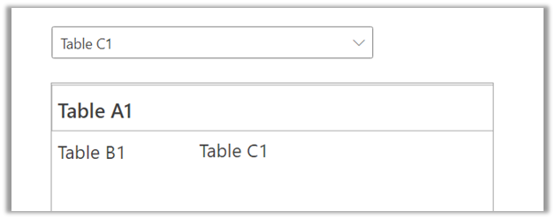 What we would want is based on the Table C record’s name selected in the combo box, we want to filter the collection to only show those records that are related to it.