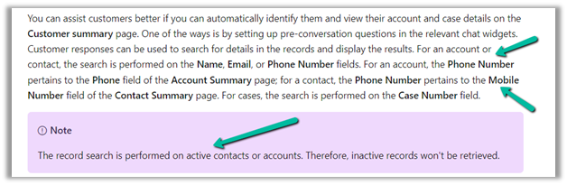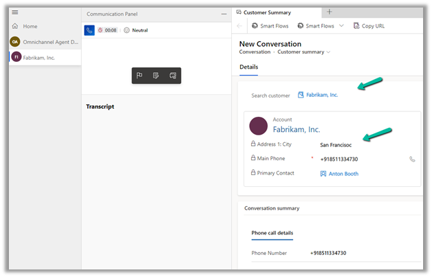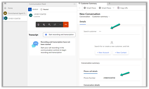 - If no matching customer (contact or account) is found, the conversation record will not have any customer prepopulated.