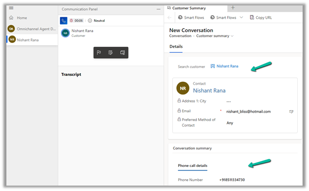 In that case, also, no customer is tagged in the conversation record, the agent would have to search for the customer.