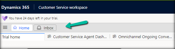 The Customer Service workspace before the user’s inbox is enabled. We can only see the Home tab.