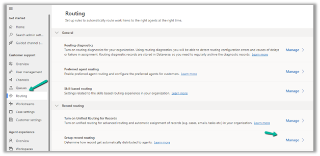 Navigate to Customer Support >> Routing >> Manage for Setup record routing.