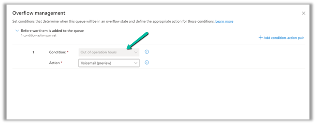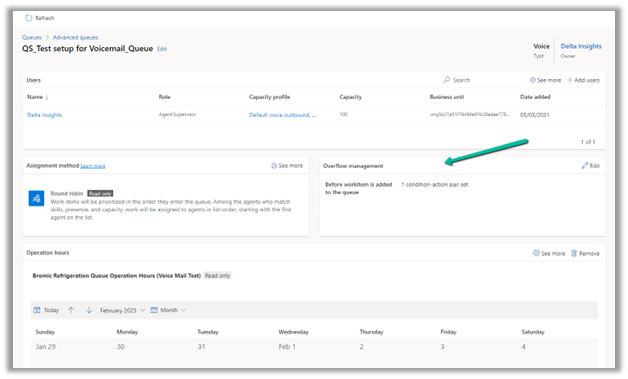 Most importantly we have configured an Overflow management rule to it along with operating hours.
