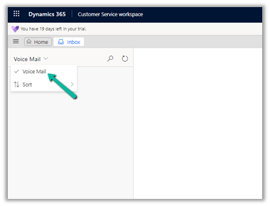 The agent inside Customer Service Workspace can now see the Voice Mail option in his Inbox.