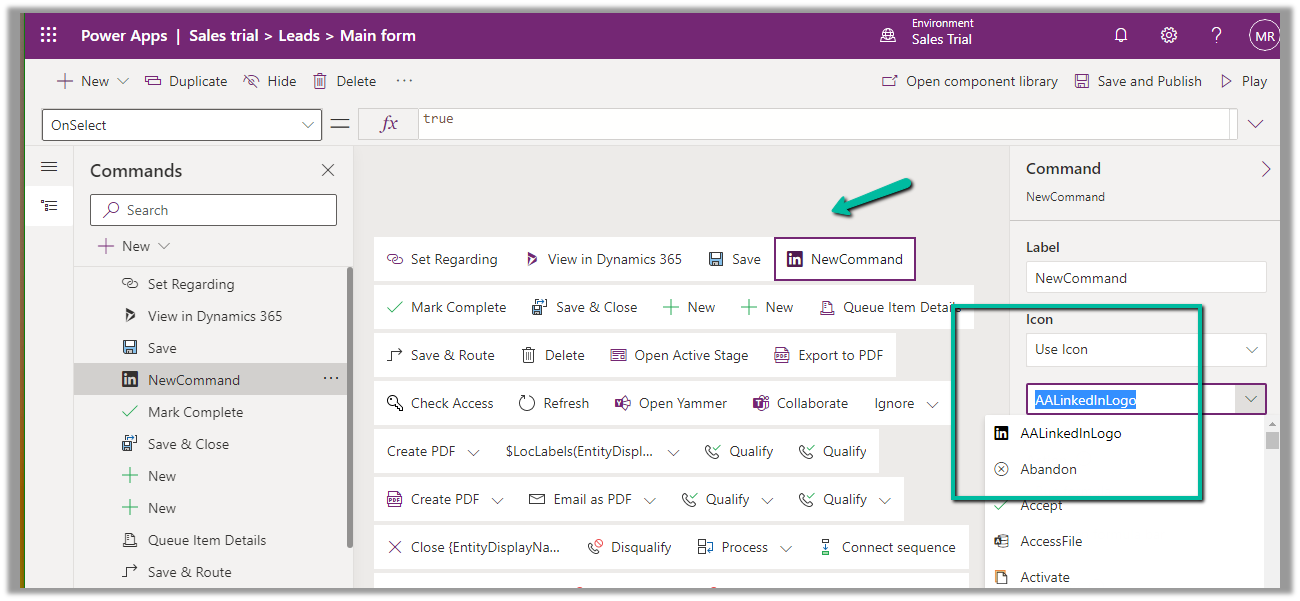 In case of a new command that is added through Command Designer, we can specify an existing Icon using the Use Icon option.