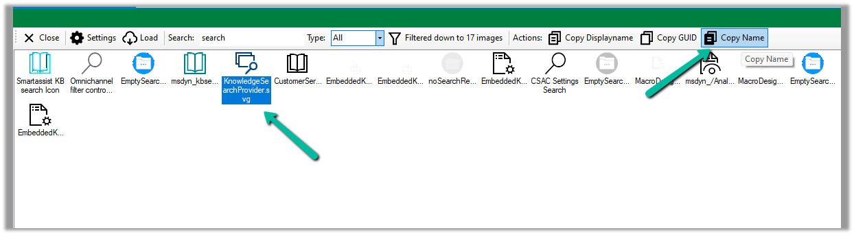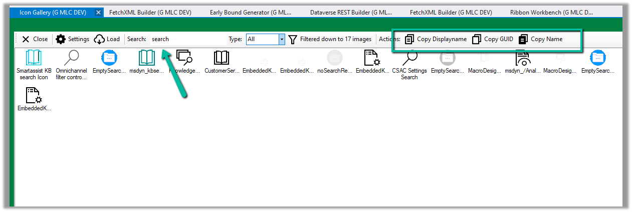 Similarly, we can use Icon Gallery (XrmToolBox Plugin) to search for the existing web resource image and icons.