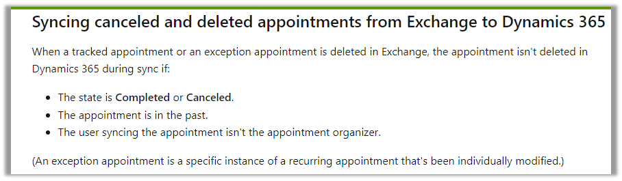 Here if the users were canceling the tracked appointment in Outlook, it will update the subject of the appointment record with the prefix – Canceled but will not cancel the record i.e. update the status of the record.