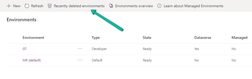 Select the deleted environment and Select Recover