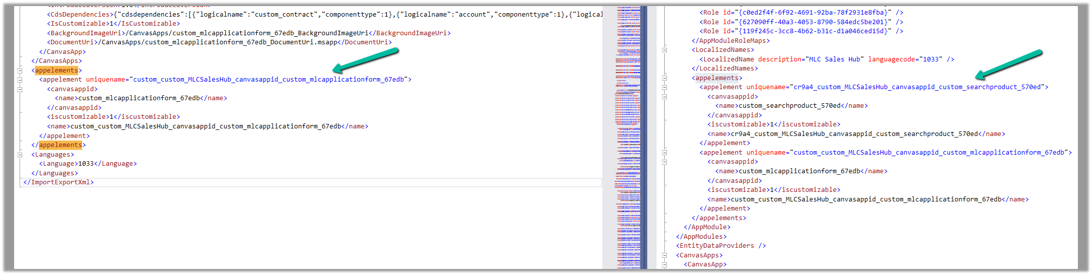 We then compared the customization.xml of the current solution with the backup solution of the Target and see the information missing in the current solution.