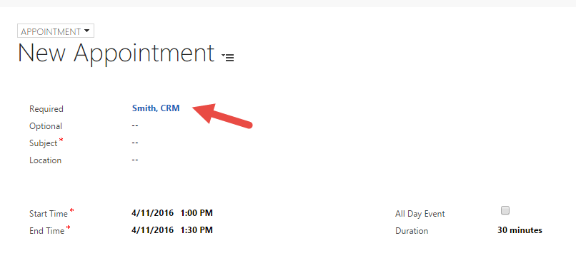 Since CRM 2013, most users have been creating appointments through the Social Pane. One nice thing about creating appointments from the Social Pane is that CRM automatically populates information onto the Appointment form. A major downside to this though is that one of the fields that gets populated is the “Required” field.