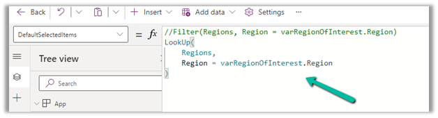 Set(varRegionOfInterest,LookUp(Enquiries,Lead=varEnquiryIdWithoutCurlyBraces, 'Region of Interest'));